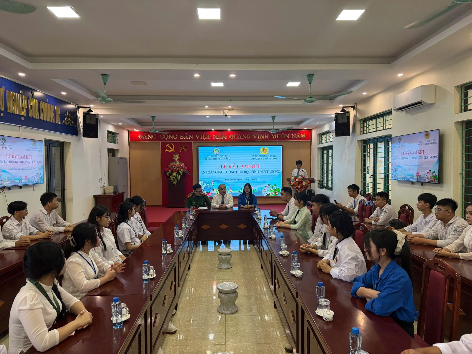 Công an xã Hiền Lương đảm bảo an ninh trật tự ngày khai giảng và tổ chức ký cam kết an toàn giao thông cho học sinh. (05/09/2025)