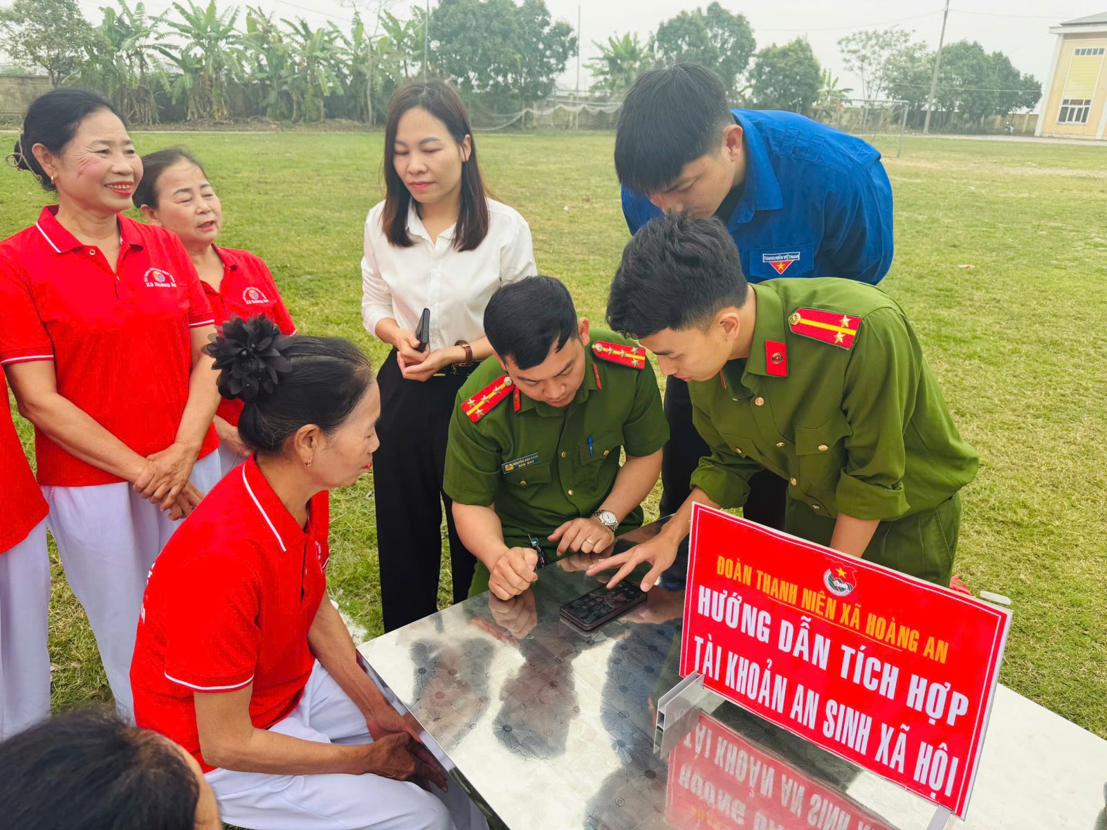Công an xã Hoàng An đẩy mạnh hỗ trợ tích hợp tài khoản an sinh xã hội trên VNeID