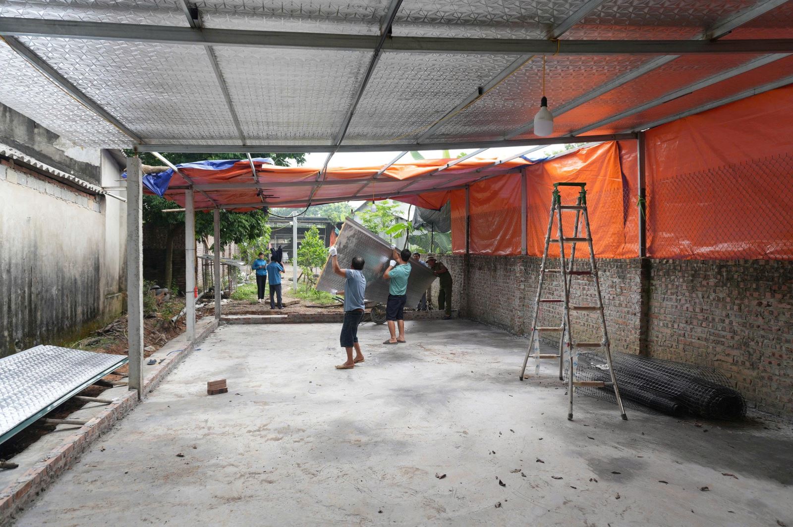 Tham gia buổi tháo dỡ có đồng chí Phí Sỹ Hùng - Trưởng Phòng Kinh tế, cán bộ Công an xã Hoàng An, Bí thư chi bộ, Trưởng thôn, Trưởng ban công tác Mặt trận, Tổ an ninh trật tự thôn Chằm cùng hộ gia đình ông Nguyễn Mạnh Cường.