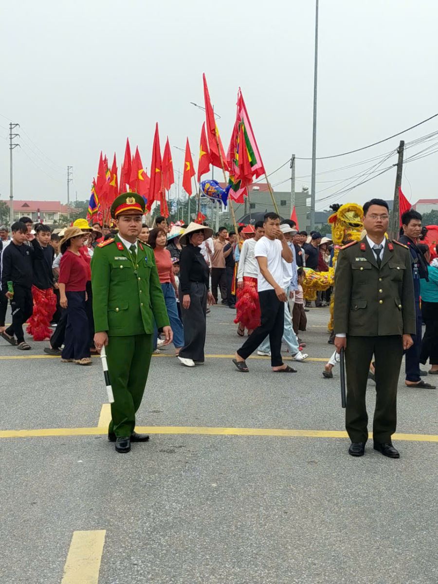 Trong thời gian diễn ra lễ hội, Công an xã bố trí cán bộ, chiến sĩ cùng lực lượng Bảo vệ an ninh, trật tự ở cơ sở trực tiếp tham gia bảo đảm an ninh, trật tự tại khu vực tổ chức lễ hội và các khu vực lân cận; tổ chức phân luồng, điều tiết giao thông, đặc biệt trong thời gian diễn ra các nghi lễ rước kiệu trên các tuyến đường tỉnh lộ, liên xã có lưu lượng người và phương tiện tham gia giao thông đông. Bên cạnh đó, các tổ tuần tra vũ trang ban đêm được tăng cường tuần tra xung quanh khu vực lễ hội nhằm kịp thời phát hiện, ngăn chặn các hành vi vi phạm pháp luật, gây rối trật tự công cộng.