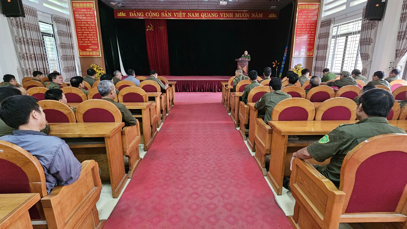 Một số hình ảnh tại Hội nghị Tại hội nghị, lãnh đạo Công an xã đã thông tin khái quát tình hình ANTT trong thời gian qua. Trên địa bàn xã, an ninh, trật tự cơ bản được giữ vững, không xảy ra vụ việc nghiêm trọng; tuy nhiên vẫn còn tiềm ẩn một số yếu tố phức tạp liên quan đến tranh chấp đất đai, mâu thuẫn trong nhân dân, vi phạm trật tự an toàn giao thông và tệ nạn xã hội tại một số khu dân cư.