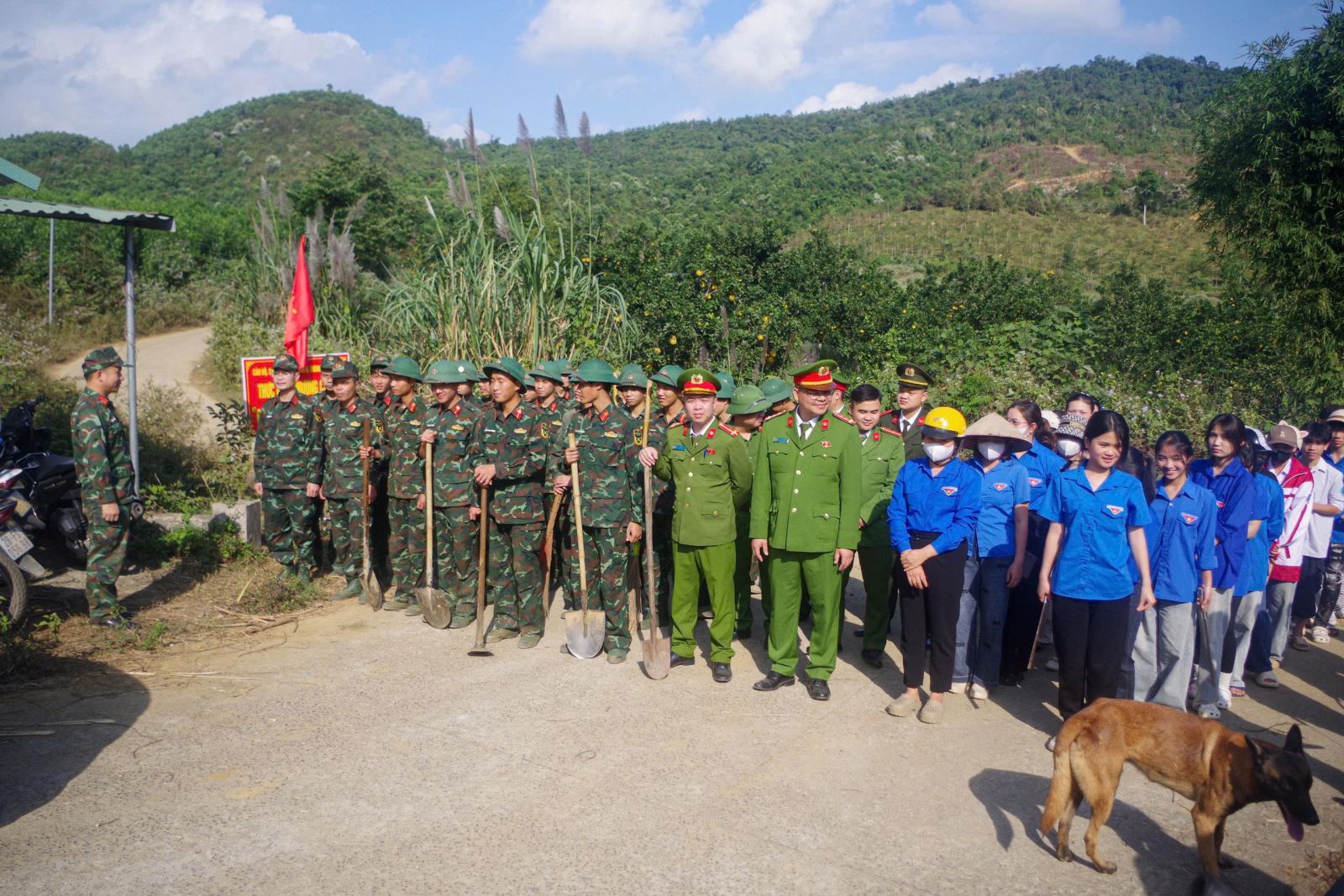 Cán bộ, chiến sĩ Công an xã, lực lượng Quân sự, đoàn viên thanh niên và cán bộ, chiến sĩ Trung đoàn BBCG 102 đã tích cực tham gia phát quang bụi rậm, chặt tỉa cây cối, thu gom rác thải, làm sạch lòng đường và lề đường