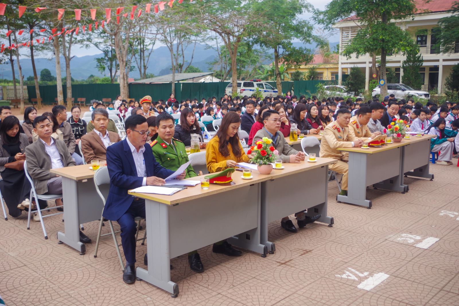 Tham dự buổi lễ có đồng chí Bùi Thanh Hải, Phó Chủ tịch UBND xã Hợp Kim, Ban Giám hiệu nhà trường, Chỉ huy, cán bộ Công an xã Hợp Kim, Chỉ huy, Cán bộ Đội 5 Phòng CSGT Công an tỉnh cùng đông đảo giáo viên, phụ huynh và học sinh nhà trường.
