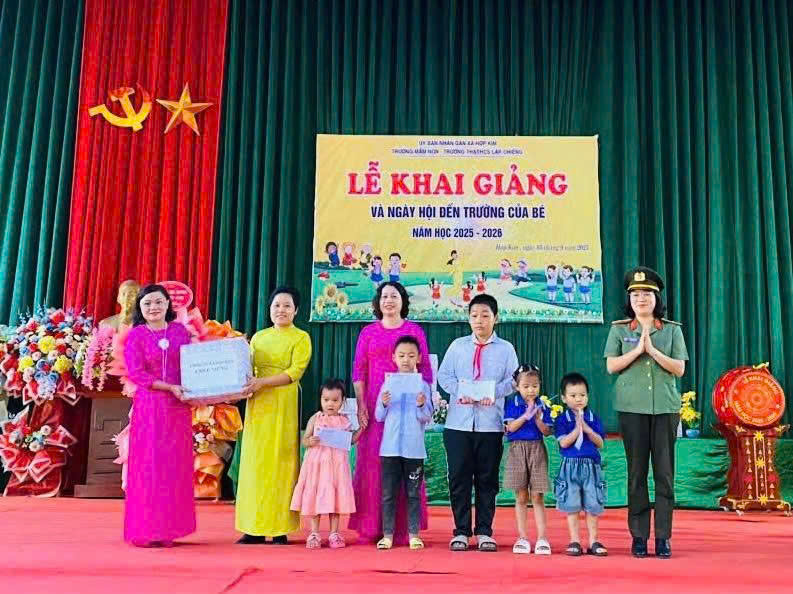 Tại buổi lễ, đại diện Công an xã Hợp Kim đã gửi lời chúc mừng năm học mới đến thầy và trò các nhà trường; đồng thời trao tặng 28 suất quà, tổng trị giá 22 triệu đồng cho các em học sinh có hoàn cảnh khó khăn, vươn lên trong học tập. Đây là những phần quà thiết thực, thể hiện tình cảm, sự quan tâm, đồng hành của lực lượng Công an với sự nghiệp “trồng người” của địa phương.