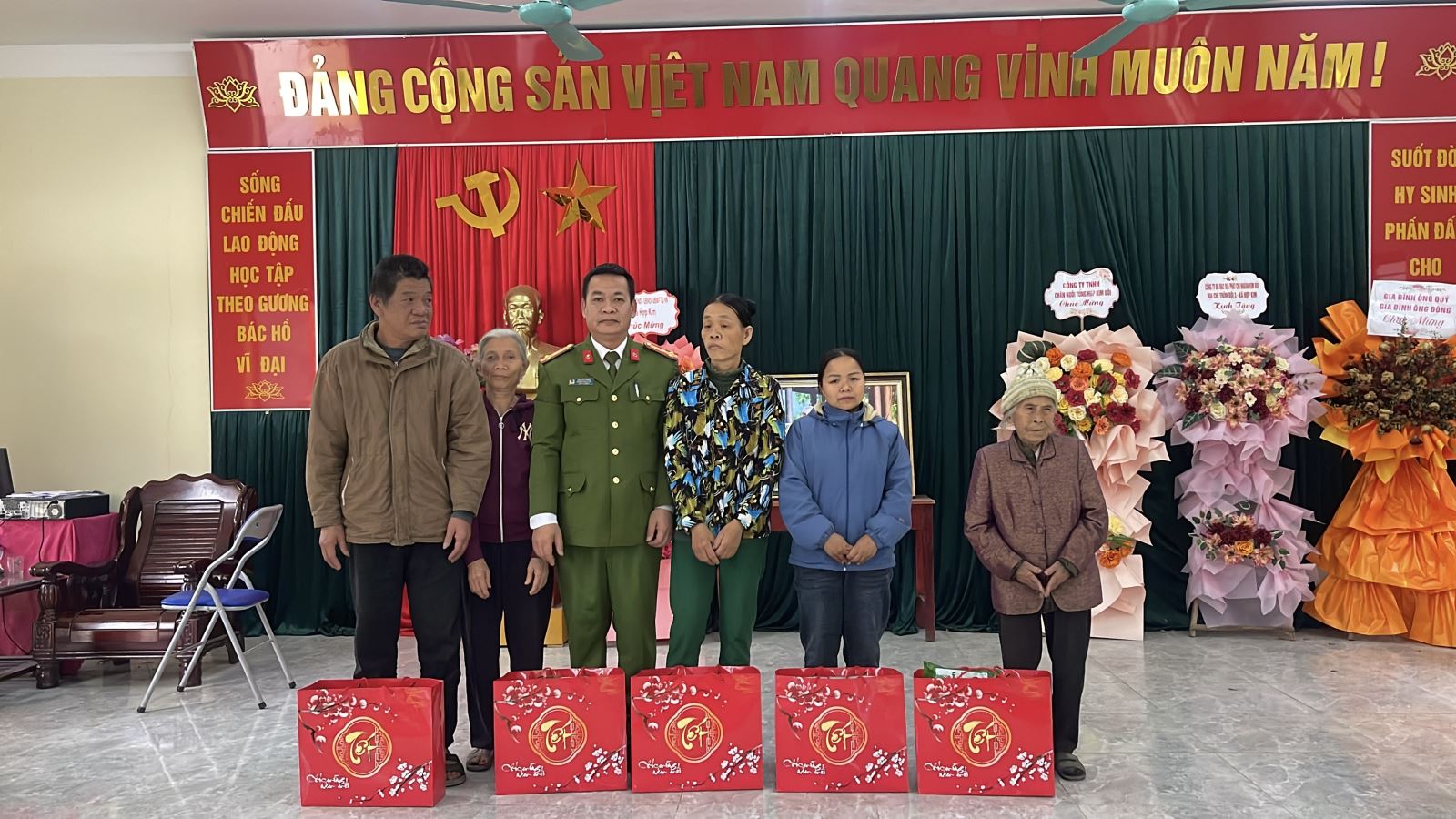 Nhân dịp này, Công an xã Hợp Kim đã tổ chức trao tặng 05 suất quà, mỗi suất trị giá 500.000 đồng, cho 05 hộ gia đình có hoàn cảnh đặc biệt khó khăn trên địa bàn xóm Chiệng. Những phần quà thể hiện sự quan tâm, chia sẻ của lực lượng Công an xã đối với Nhân dân, góp phần động viên các gia đình đón Tết Nguyên đán trong không khí ấm áp, nghĩa tình.