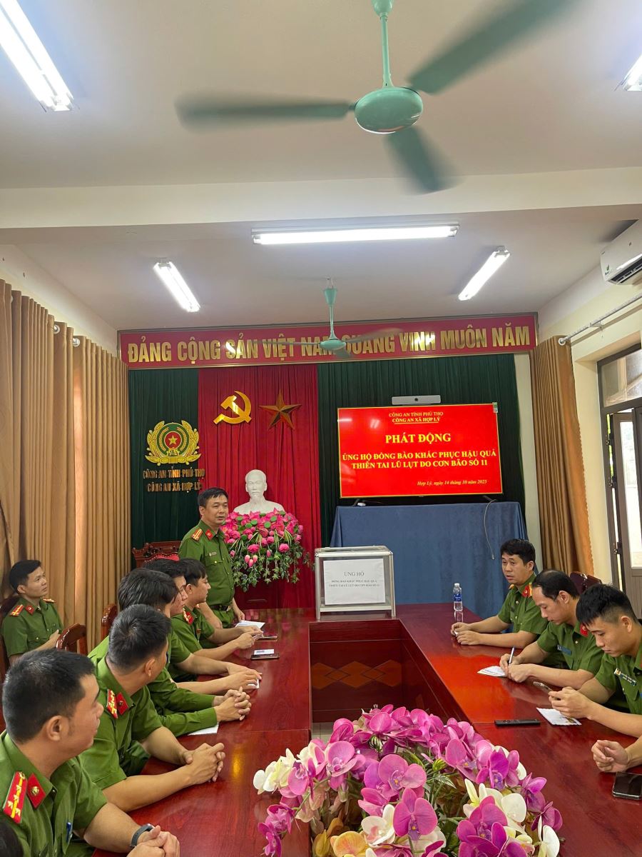 Tại buổi lễ, thay mặt lãnh đạo, chỉ huy Công an xã, đồng chí Trung tá Vương Văn Tài - Phó Trưởng Công an xã đã phát động đến từng cán bộ, chiến sĩ trong lực lượng Công an xã Hợp Lý tham gia hưởng ứng phong trào “Chung tay vì Nhân dân vùng bão lũ”. Một hành động nhỏ nhưng có ý nghĩa sâu sắc, chung tay sẻ chia, giúp đồng bào sớm khắc phục hậu quả thiên tai, ổn định cuộc sống.