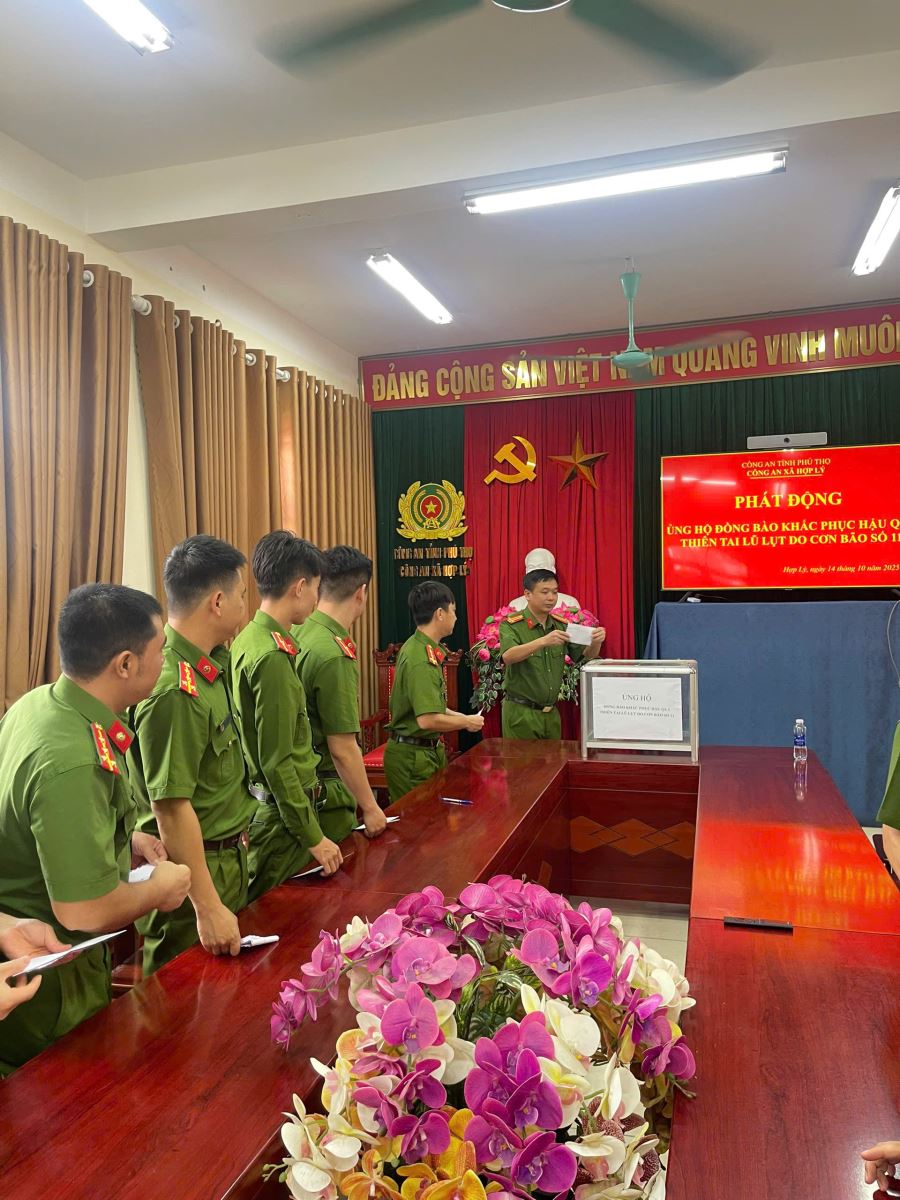 Trong những ngày qua, đồng bào ta tại các địa phương khu vực Bắc Bộ đã phải gánh chịu những thiệt hại nặng nề do Cơn bão số 11 “MatMo” gây ra. Mưa lũ đã gây ra thiệt hại rất nghiêm trọng về người, tài sản của người dân và cơ sở hạ tầng bị hư hỏng nặng nề. Với tinh thần đoàn kết “Tương thân tương ái”, “Lá lành đùm lá rách”, ngày 14/10/2025, Công an xã Hợp Lý đã tổ chức chương trình ủng hộ đồng bào khắc phục hậu quả thiên tai, lũ lụt do cơn bão số 11.