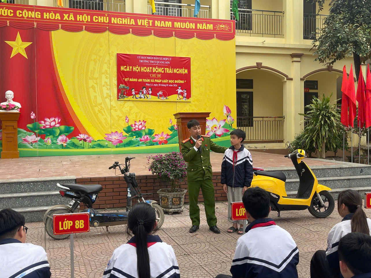 Ngày 30/01/2025, Công an xã Hợp Lý đã phối hợp với Trường THCS Quang Sơn tổ chức buổi ngoại khóa tuyên truyền pháp luật về trật tự, an toàn giao thông cho học sinh nhà trường.