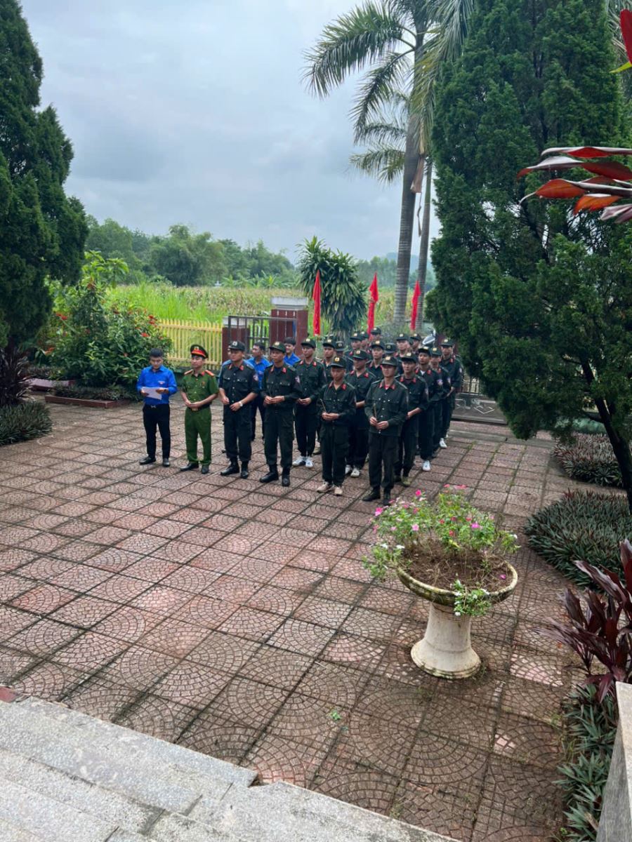 Trong không khí trang nghiêm, toàn thể cán bộ, chiến sĩ và đoàn viên thanh niên đã dâng hương tưởng niệm, dành một phút mặc niệm để bày tỏ lòng biết ơn sâu sắc trước công lao to lớn của các Anh hùng liệt sĩ. Mặc dù thời tiết mưa, các lực lượng tham gia vẫn tích cực thực hiện tổng vệ sinh khuôn viên nghĩa trang, thu gom rác thải, phát quang cỏ dại, lau dọn phần mộ liệt sĩ, thể hiện tinh thần trách nhiệm và sự tri ân chân thành.