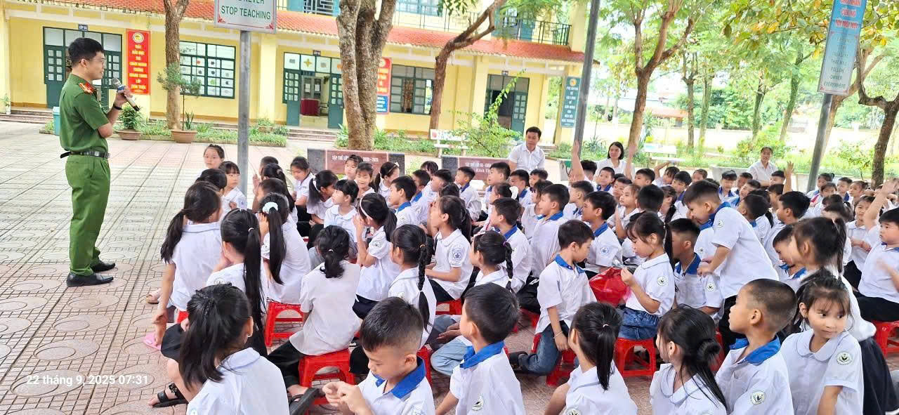 Công an xã Hùng Việt tuyên truyền pháp luật về an toàn giao thông cho học sinh Tiểu học Nguyễn Khắc Nghiên (03/10/2025)