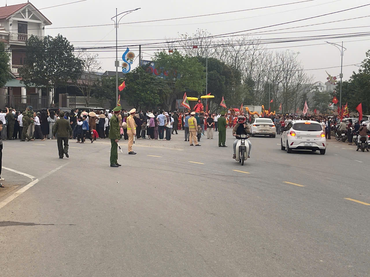Lễ rước diễn ra trên tuyến đường dài khoảng 1,5 km. Để bảo đảm trật tự, an toàn giao thông, Công an xã Hy Cương đã báo cáo Phòng Cảnh sát giao thông tăng cường 01 tổ công tác gồm 04 cán bộ phối hợp phân luồng, hướng dẫn giao thông tại các vị trí trọng điểm; bố trí khu vực trông giữ phương tiện phù hợp; nhắc nhở người dân chấp hành quy định của pháp luật, không để xảy ra ùn tắc kéo dài.