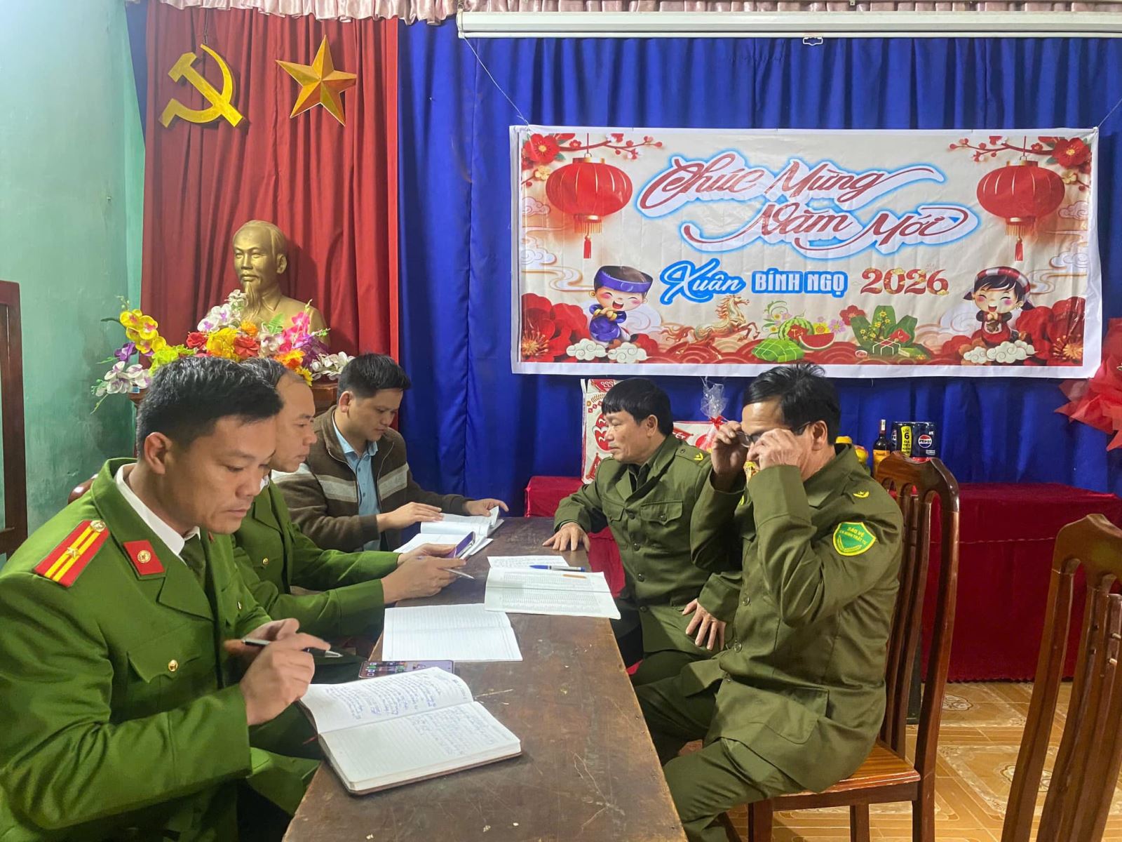 19 giờ ngày 18/02/2026 (tức ngày mùng 2 Tết Bính Ngọ), khi nhiều gia đình vẫn đang sum họp đầu xuân, cán bộ Cảnh sát khu vực Công an xã Lạc Sơn cùng Tổ bảo vệ an ninh, trật tự ở cơ sở vẫn trực tiếp xuống địa bàn phố Lâm Hóa 1 để rà soát, kiểm tra cư trú. Lực lượng chức năng tiến hành đối chiếu dữ liệu dân cư với tình hình thực tế về số hộ, số nhân khẩu thường trú, tạm trú; kịp thời phát hiện, chấn chỉnh những tồn tại, thiếu sót trong công tác đăng ký, quản lý cư trú, đồng thời đề ra các nhiệm vụ trọng tâm cần tập trung thực hiện trong thời gian tiếp theo nhằm bảo đảm tiến độ chung.