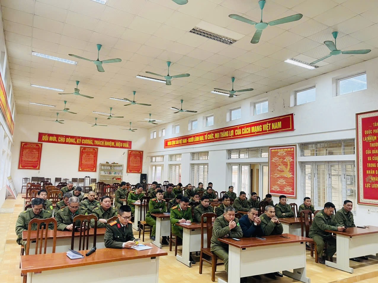 Hình ảnh Hội nghị Tại hội nghị, lãnh đạo Công an xã đã quán triệt các nội dung trọng tâm về công tác bảo đảm an ninh, trật tự trong thời gian tới; đồng thời tập trung thảo luận, đánh giá toàn diện tình hình an ninh chính trị, trật tự, an toàn xã hội trên địa bàn. Trên cơ sở phân tích đặc điểm tình hình, hội nghị đã chỉ rõ những yếu tố tiềm ẩn phức tạp, các lĩnh vực, địa bàn trọng điểm cần tập trung quản lý, kiểm soát chặt chẽ trong dịp trước, trong và sau Tết, cũng như thời gian diễn ra lễ hội và bầu cử.