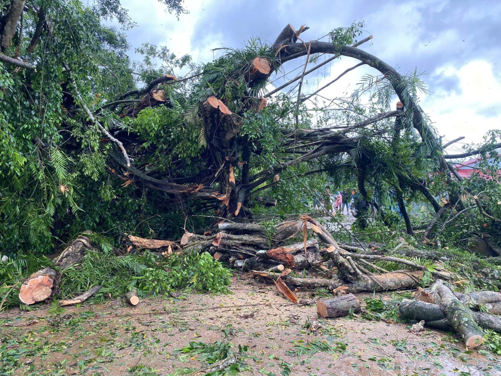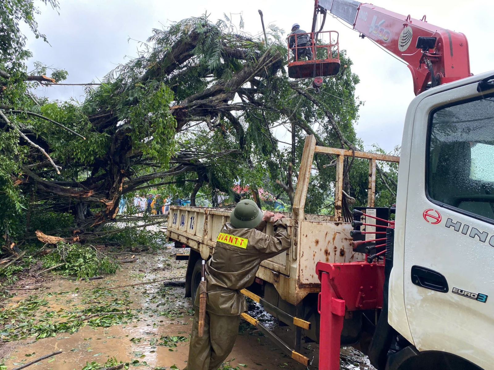 Cây lớn gãy đổ chắn ngang đường làm cản trở xe cộ lưu thông, hư hỏng đường dây điện, Công an xã Lạc Sơn và các lực lượng đã khẩn trương dọn dẹp cây đổ do mưa bão, khôi phục các tuyến giao thông, bảo đảm an toàn cho người dân.