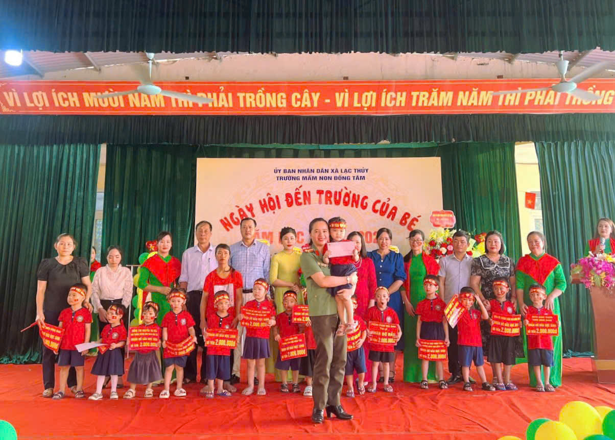 Nhân dịp này, lãnh đạo Công an xã Lạc Thủy đã đến tặng hoa, chúc mừng các nhà trường, trao quà động viên học sinh có hoàn cảnh khó khăn, tiếp thêm động lực cho các em trong năm học mới.