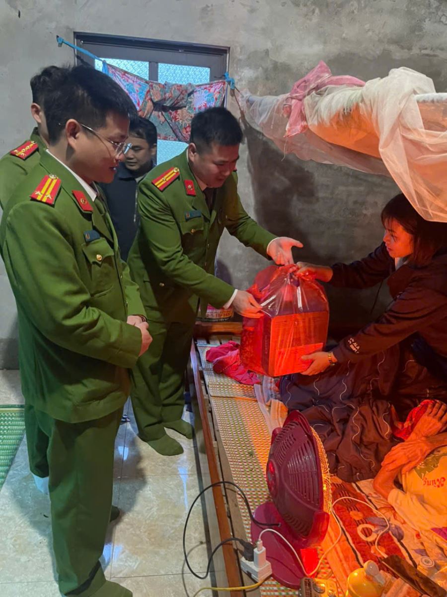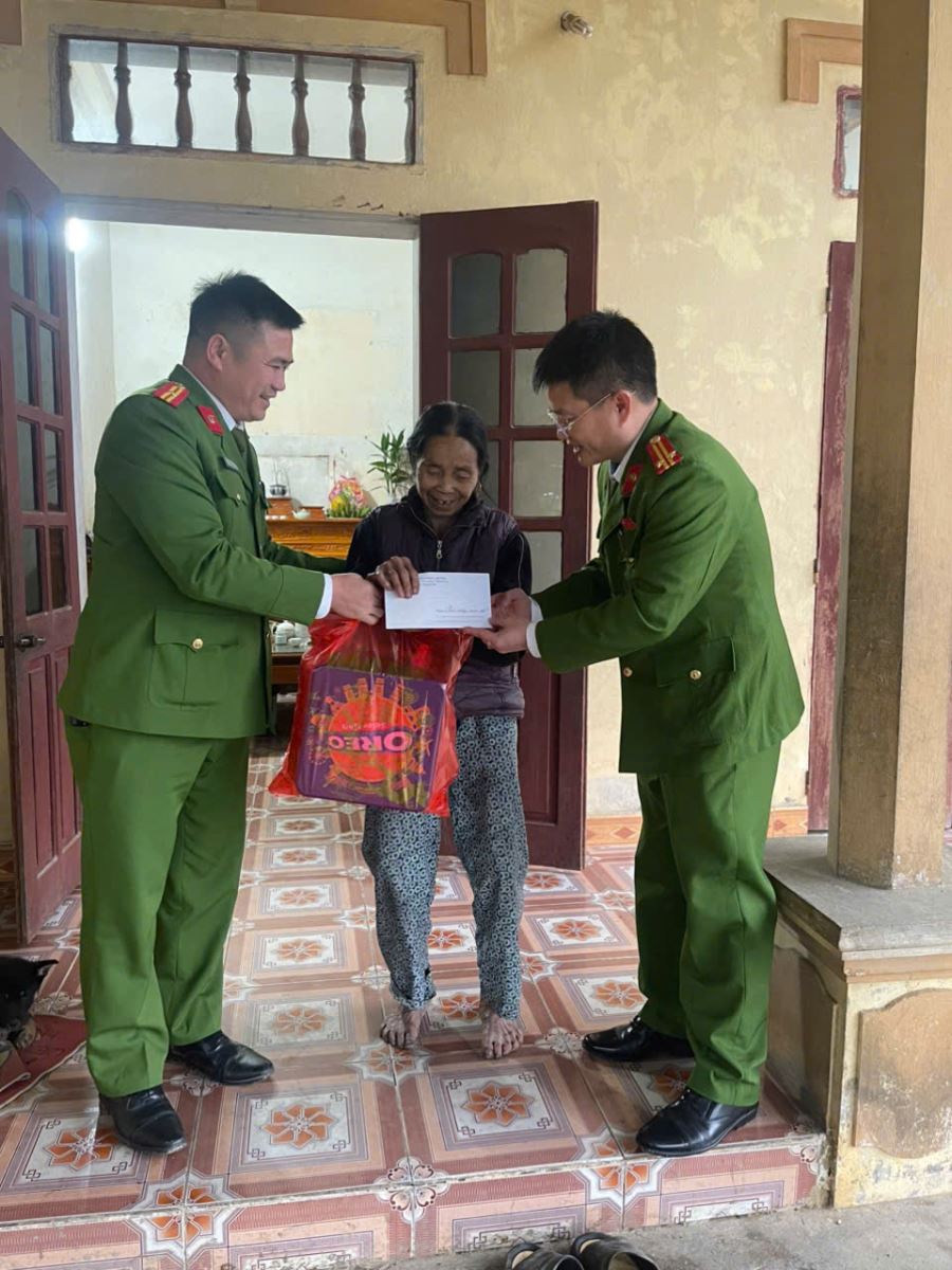 Hình ảnh hoạt động Trong buổi thăm hỏi, tặng quà đoàn công tác bày tỏ sự tri ân đối với những cống hiến, hy sinh to lớn của Mẹ Việt Nam Anh hùng và gia đình trong sự nghiệp đấu tranh giải phóng dân tộc, bảo vệ Tổ quốc. Phần quà Tết được trao tuy giá trị vật chất không lớn nhưng thể hiện sự quan tâm, chia sẻ của cán bộ, chiến sĩ Công an xã đối với Mẹ Việt Nam Anh hùng và gia đình.