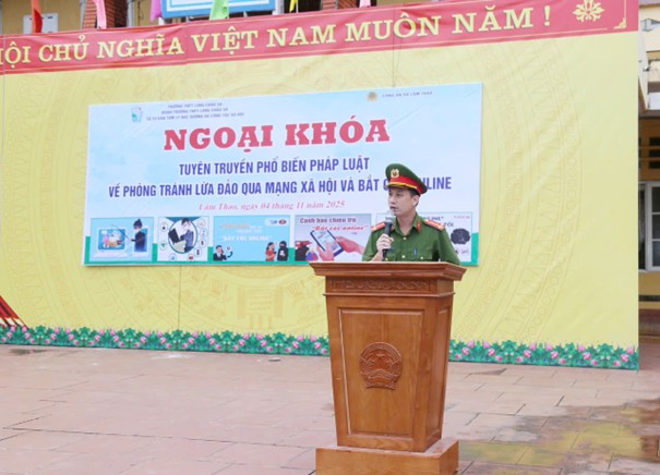 Nhằm nâng cao nhận thức pháp luật và kỹ năng tự bảo vệ cho học sinh trước các nguy cơ tội phạm công nghệ cao, đặc biệt là các hình thức lừa đảo và bắt cóc trực tuyến, Công an xã Lâm Thao, tỉnh Phú Thọ vừa phối hợp tổ chức các buổi tuyên truyền ngoại khóa với chủ đề “An toàn số cho em - Giải pháp phòng, chống bắt cóc trực tuyến” và “Phòng tránh lừa đảo qua mạng xã hội”.