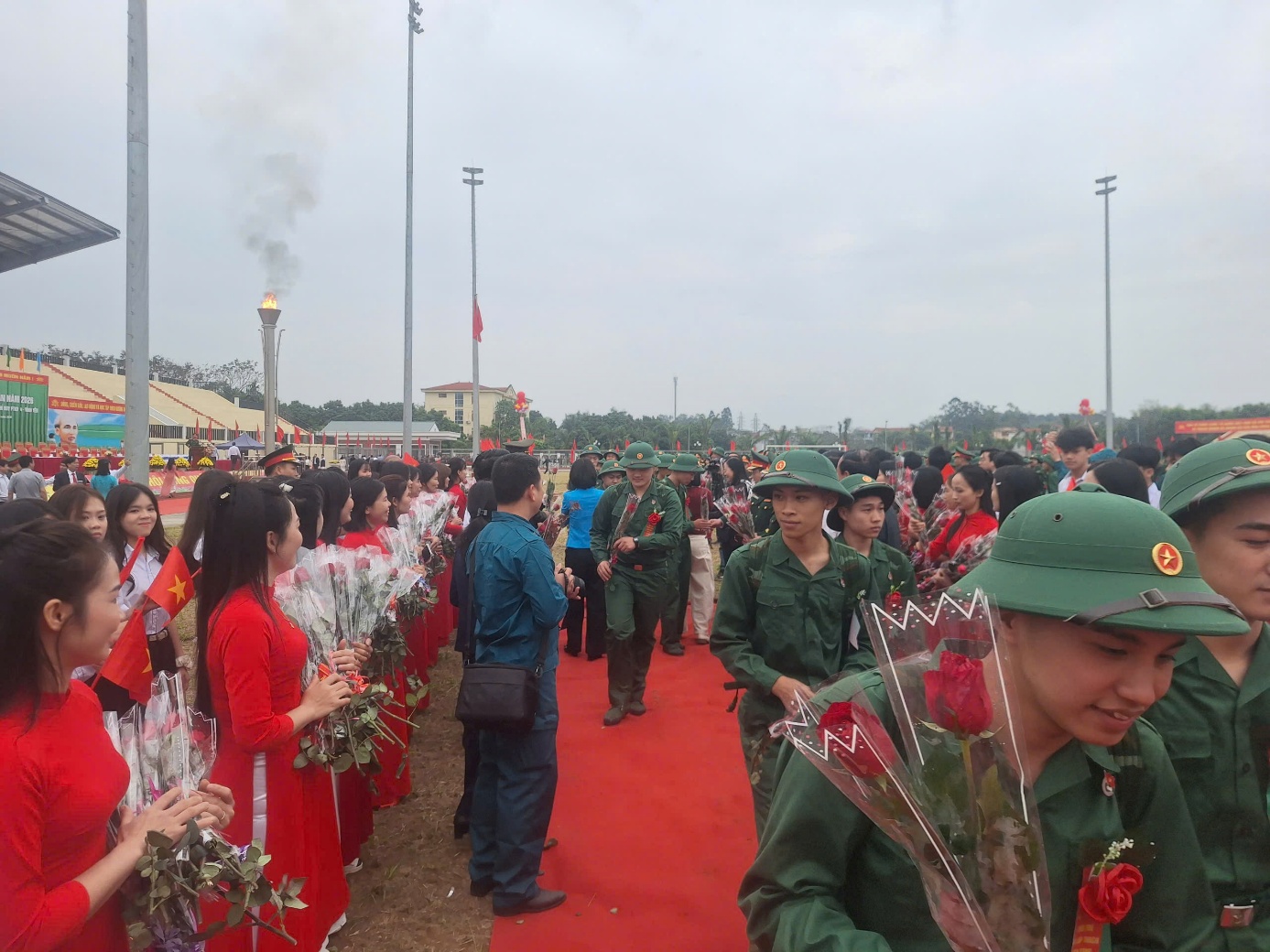 Dự và chỉ đạo buổi lễ có đồng chí Nguyễn Khắc Hiếu, Tỉnh ủy viên, Phó Chủ tịch UBND tỉnh; đồng chí Bùi Thị Thu Hằng, Ủy viên Ban Thường vụ Tỉnh ủy, Chủ nhiệm Ủy ban Kiểm tra Tỉnh ủy; đồng chí Đại tá Nguyễn Thành, Phó Giám đốc Công an tỉnh; đồng chí Thượng tá Nguyễn Duy Hưng, Phó Tham mưu trưởng Bộ Chỉ huy Quân sự tỉnh cùng đại diện các đơn vị nhận quân.
