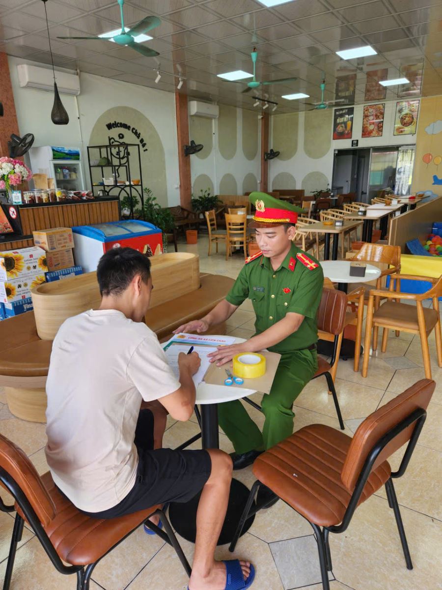 Công an xã trực tiếp đến làm việc cơ sở kinh doanh dịch vụ ăn uống, tổ chức tuyên truyền pháp luật và yêu cầu