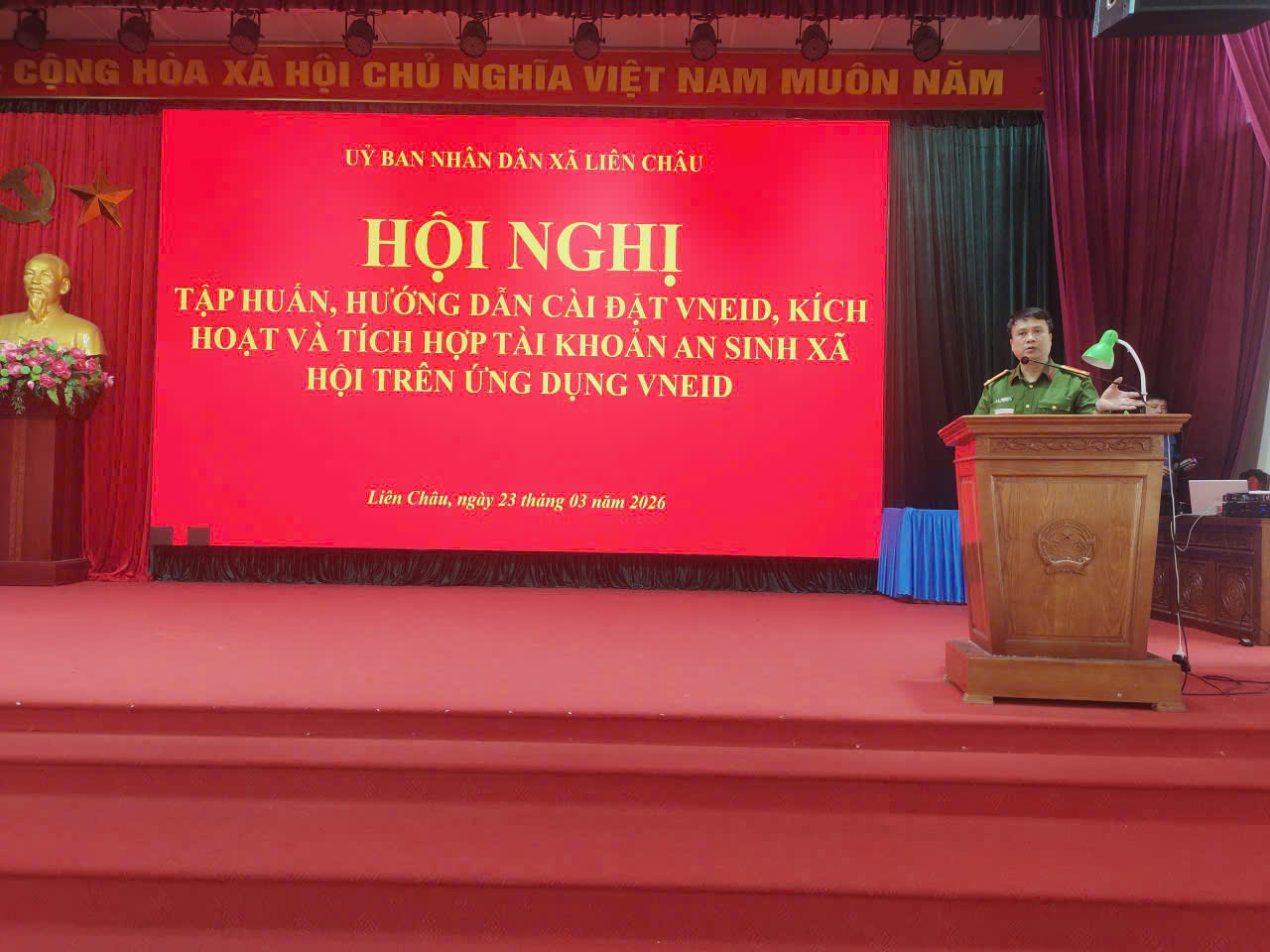 Theo đó, ngày 23/3/2026, tại hội trường UBND xã Liên Châu, Công an xã đã tổ chức hội nghị tập huấn, hướng dẫn cài đặt, kích hoạt và tích hợp tài khoản an sinh xã hội trên ứng dụng VNeID. Tham dự hội nghị có đồng chí Trần Minh Tuấn – Phó Chủ tịch UBND xã, đại diện Chỉ huy Công an xã cùng gần 200 đại biểu là đại diện các ban, ngành, đoàn thể và lực lượng nòng cốt tại các thôn như bí thư chi bộ, trưởng thôn, hội phụ nữ, Mặt trận Tổ quốc, Đoàn Thanh niên…