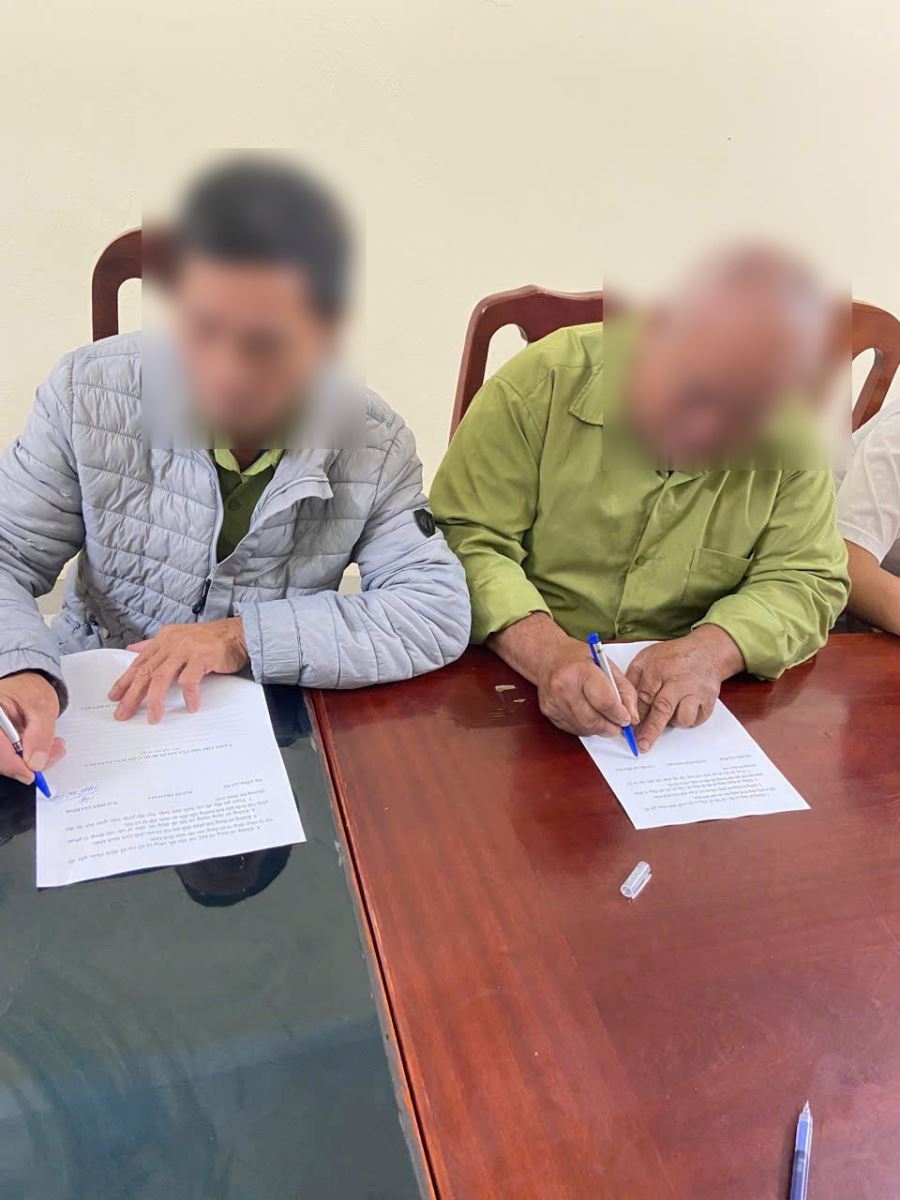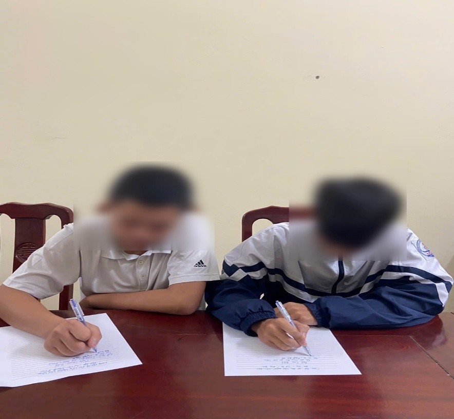 Hai thanh thiếu niên tự nguyện viết bản cam kết không vi phạm pháp luật, tích cực rèn luyện,