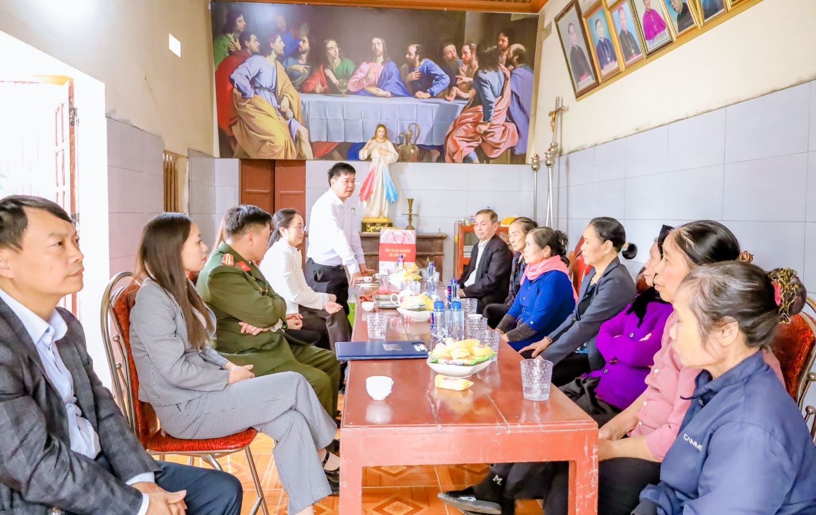 Hình ảnh hoạt động Công an xã cũng đề nghị các cơ sở tôn giáo tiếp tục phối hợp thông tin kịp thời cho lực lượng Công an khi phát hiện các vụ việc phức tạp liên quan đến an ninh trật tự; tuyên truyền, vận động tín đồ chấp hành nghiêm chủ trương của Đảng, chính sách, pháp luật của Nhà nước; tích cực tham gia phong trào “Toàn dân bảo vệ an ninh Tổ quốc”, góp phần giữ vững ổn định địa bàn trong dịp Tết.