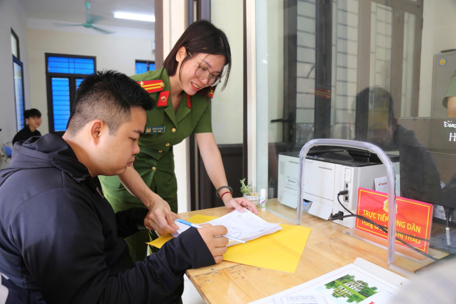 Công an xã Liên Hoà hướng dẫn nhân dân làm thủ tục hành chính