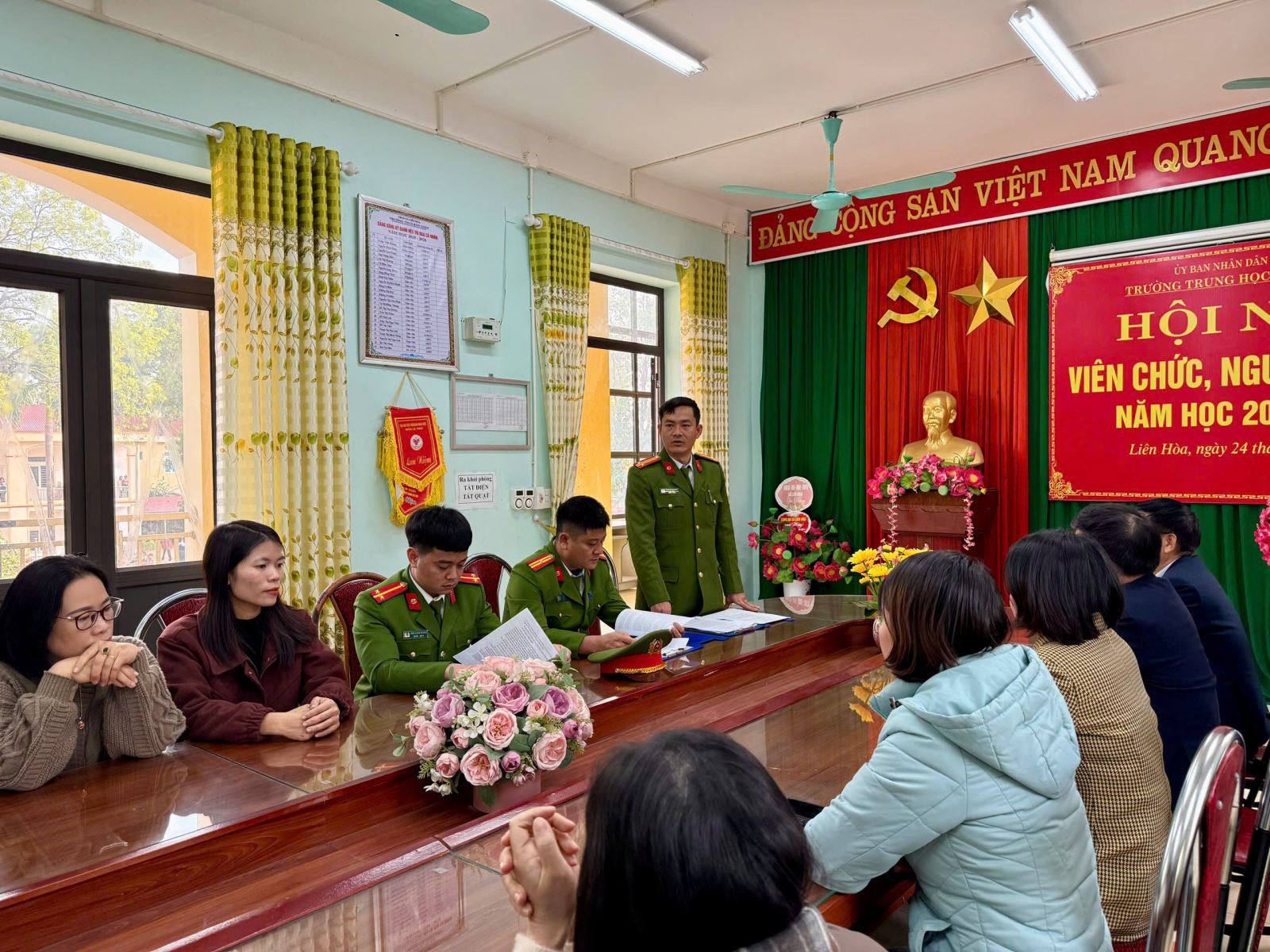 Thực hiện kế hoạch bảo đảm an ninh, trật tự dịp Tết Nguyên đán 2026, Công an xã Liên Hòa đã tổ chức ký cam kết chấp hành pháp luật về quản lý, sử dụng vũ khí, vật liệu nổ, công cụ hỗ trợ và pháo đối với các trường học, cơ sở kinh doanh và hộ dân trên địa bàn.