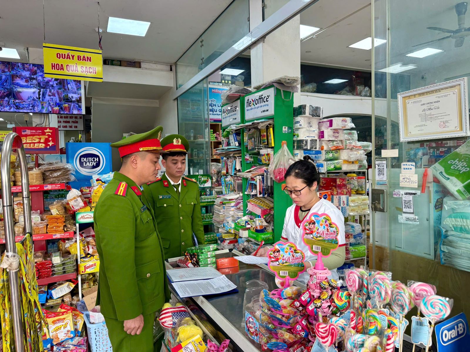 Lực lượng Công an xã tuyên truyền và tổ chức ký cam kết đối với các hộ, cơ sở kinh doanh trên địa bàn