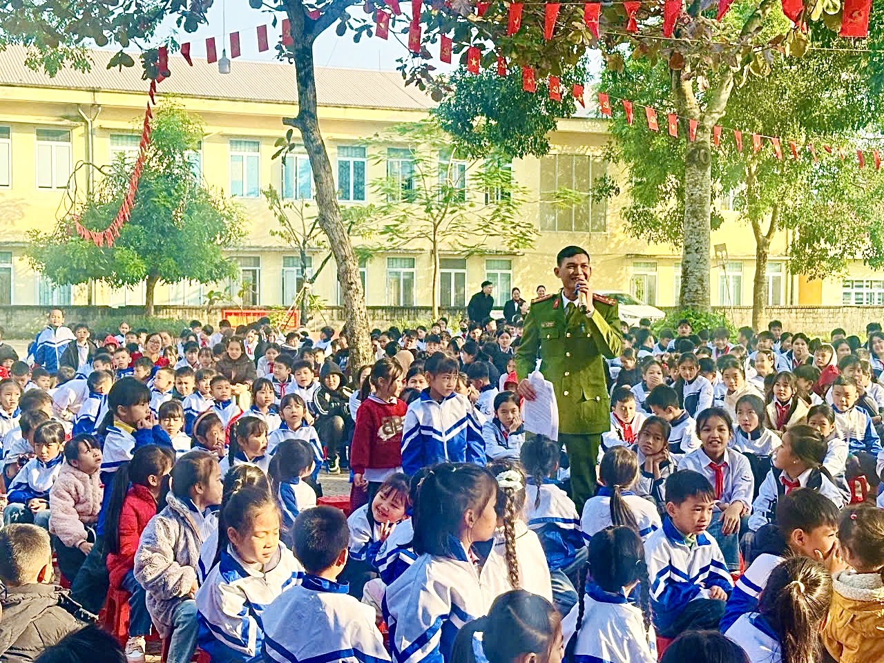 Buổi tuyên truyền diễn ra trong không khí hào hứng, cởi mở và nhận được sự hưởng ứng tích cực từ học sinh. Thông qua hoạt động này, nhà trường và lực lượng Công an cơ sở mong muốn góp phần trang bị kiến thức, kỹ năng cần thiết để học sinh chủ động phòng tránh rủi ro, bảo đảm an toàn cho bản thân trong học tập và sinh hoạt hằng ngày.