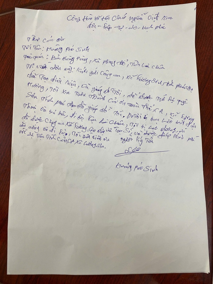 Cảm kích trước sự giúp đỡ tận tình, sau khi trở về, anh Hoàng Páo Sinh đã viết thư bày tỏ lòng biết ơn sâu sắc tới tập thể cán bộ, chiến sĩ Công an xã Lương Sơn. Trong thư, anh chia sẻ việc bản thân bị lừa, mất tài sản và rơi vào hoàn cảnh khó khăn, đồng thời gửi lời cảm ơn chân thành tới lực lượng Công an đã hỗ trợ, giúp đỡ anh vượt qua tình huống nguy hiểm, trở về an toàn.
