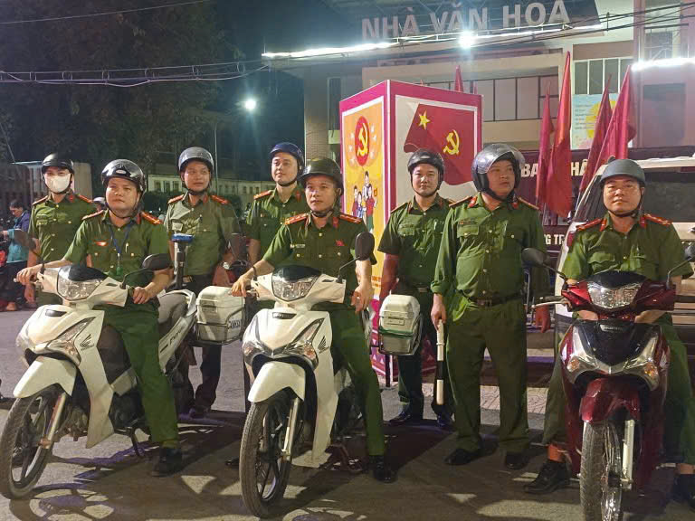 Công an xã tổ chức tuần tra ban đêm đảm bảo TTATGT