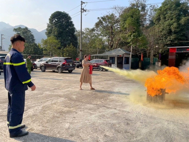 Hình ảnh tại buổi tập huấn bồi dưỡng nghiệp vụ PCCC và CNCH Bên cạnh đó, các học viên được trang bị kiến thức về trách nhiệm của cá nhân, nhiệm vụ của lực lượng PCCC và cứu nạn, cứu hộ tại cơ sở; các yêu cầu pháp lý về điều kiện an toàn phòng cháy, chữa cháy đối với từng loại hình cơ sở. Nội dung tập huấn cũng tập trung phân tích các nguyên nhân thường gây ra cháy, nổ; biện pháp phòng ngừa cháy trong sử dụng điện, nguồn lửa, nguồn nhiệt; công tác quản lý, bảo quản và bảo dưỡng phương tiện, thiết bị phòng cháy, chữa cháy và cứu nạn, cứu hộ.