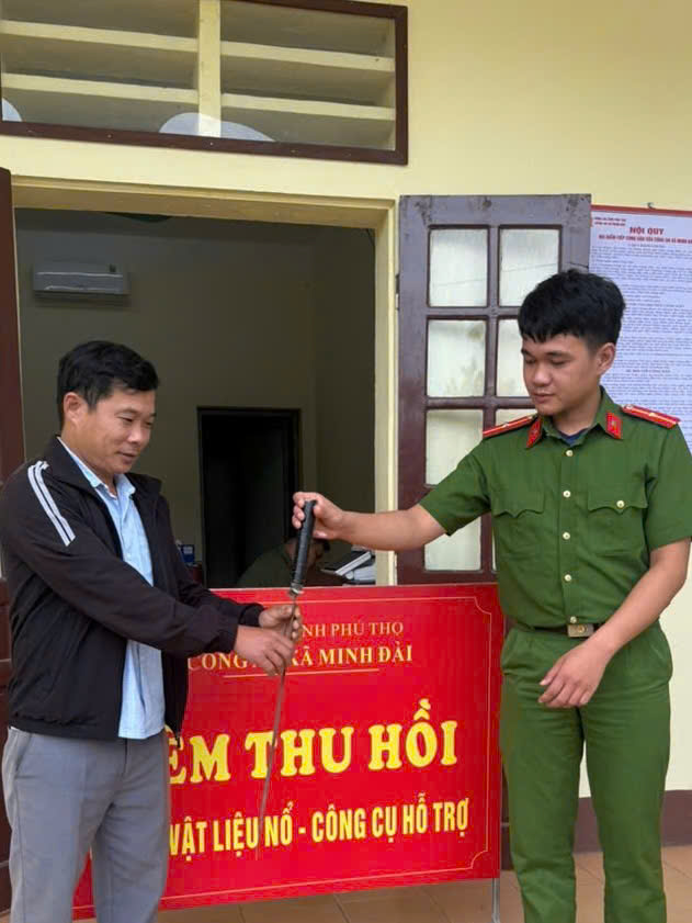 Ngày 11 tháng 11 năm 2025, Công an xã Minh Đài đã tiếp nhận sự tự nguyện giao nộp: 01 khẩu súng quân dụng từ công dân Vũ Hữu Biên, sinh năm: 1992, HKTT: Khu Lũng, xã Minh Đài, tỉnh Phú Thọ và 01 kiếm tự chế từ ông Nguyễn Xuân Tỵ, sinh năm: 1980, HKTT: Khu Hồng Kiên, xã Minh Đài, tỉnh Phú Thọ. Việc kịp thời thu hồi vũ khí, công cụ hỗ trợ là yếu tố then chốt giúp loại bỏ nguy cơ phát sinh tội phạm, bạo lực, và các vụ tai nạn đáng tiếc.
