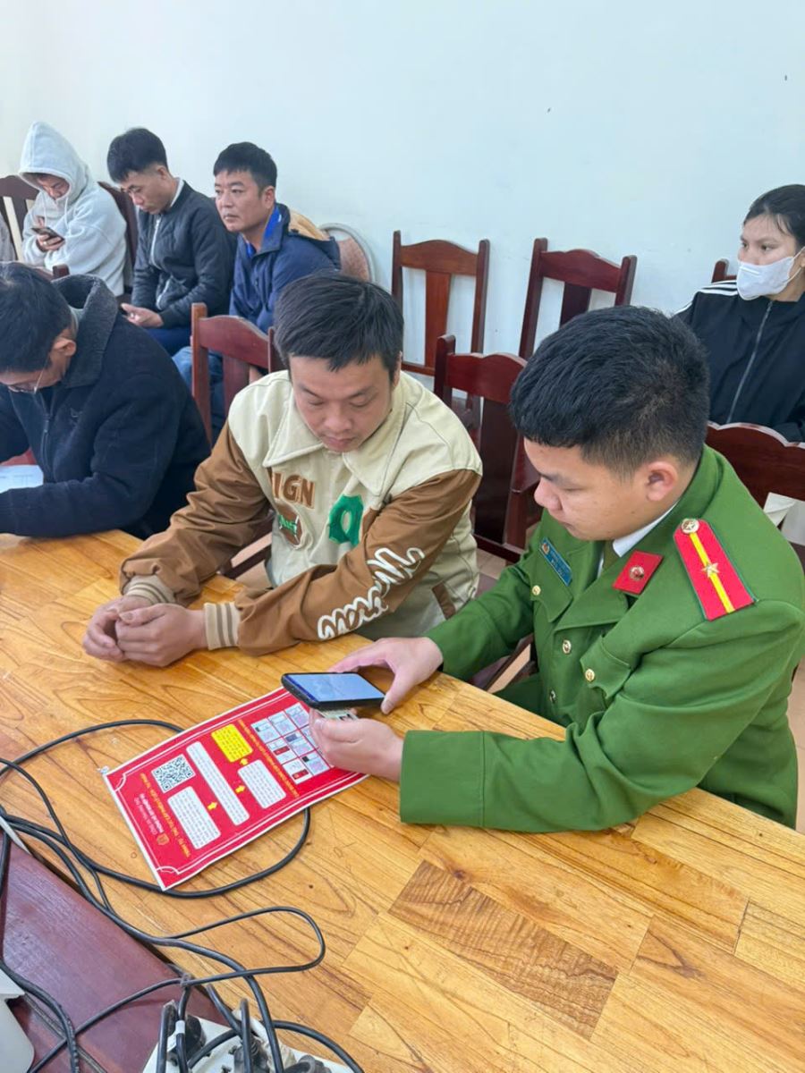 Cán bộ, chiến sĩ Công an xã trực tiếp hỗ trợ người dân đăng ký, kích hoạt tài khoản định danh điện tử mức 2; hướng dẫn nộp hồ sơ trực tuyến đối với các thủ tục như: đăng ký xe, đăng ký cư trú, điều chỉnh và xác nhận thông tin cư trú… Đồng thời giải đáp kịp thời những khó khăn, vướng mắc trong quá trình thực hiện. Đối với người cao tuổi hoặc người ít tiếp cận công nghệ, lực lượng Công an xã kiên trì hướng dẫn từng bước để người dân hiểu và thực hiện đúng quy trình.