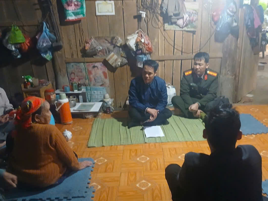 Tại các điểm đến, đại diện Công an xã đã thăm hỏi, trao đổi tình hình ANTT, ghi nhận đóng góp của người có uy tín và lực lượng ANTT cơ sở; đồng thời đề nghị các lực lượng tiếp tục nêu gương, chủ động nắm tình hình, kịp thời phản ánh thông tin, tham gia phòng ngừa, đấu tranh với tội phạm và vi phạm pháp luật. Công an xã cũng phối hợp người có uy tín đẩy mạnh tuyên truyền chủ trương, chính sách của Đảng, pháp luật của Nhà nước; vận động Nhân dân chấp hành pháp luật, giữ gìn đoàn kết cộng đồng, xây dựng đời sống văn hóa.