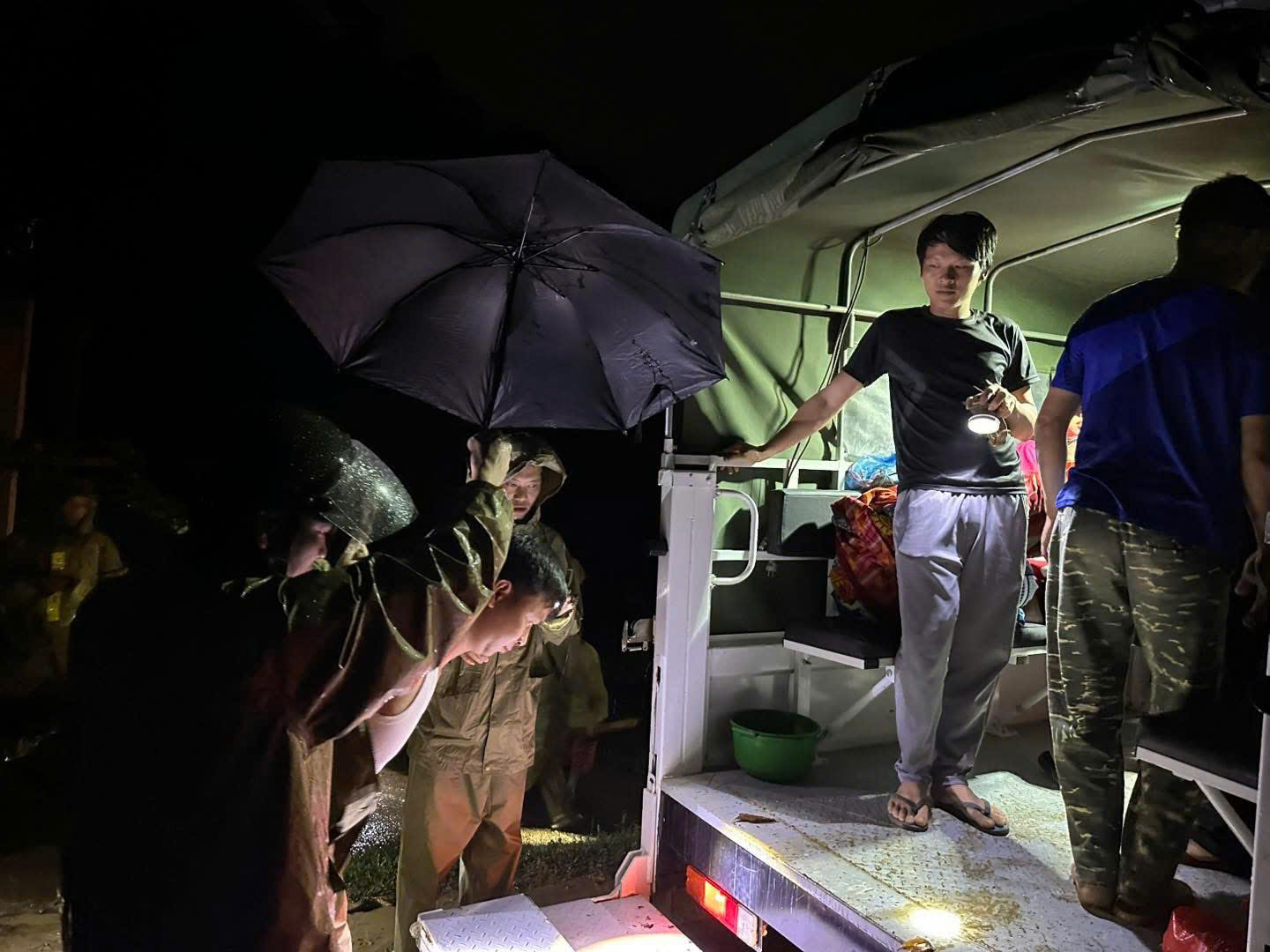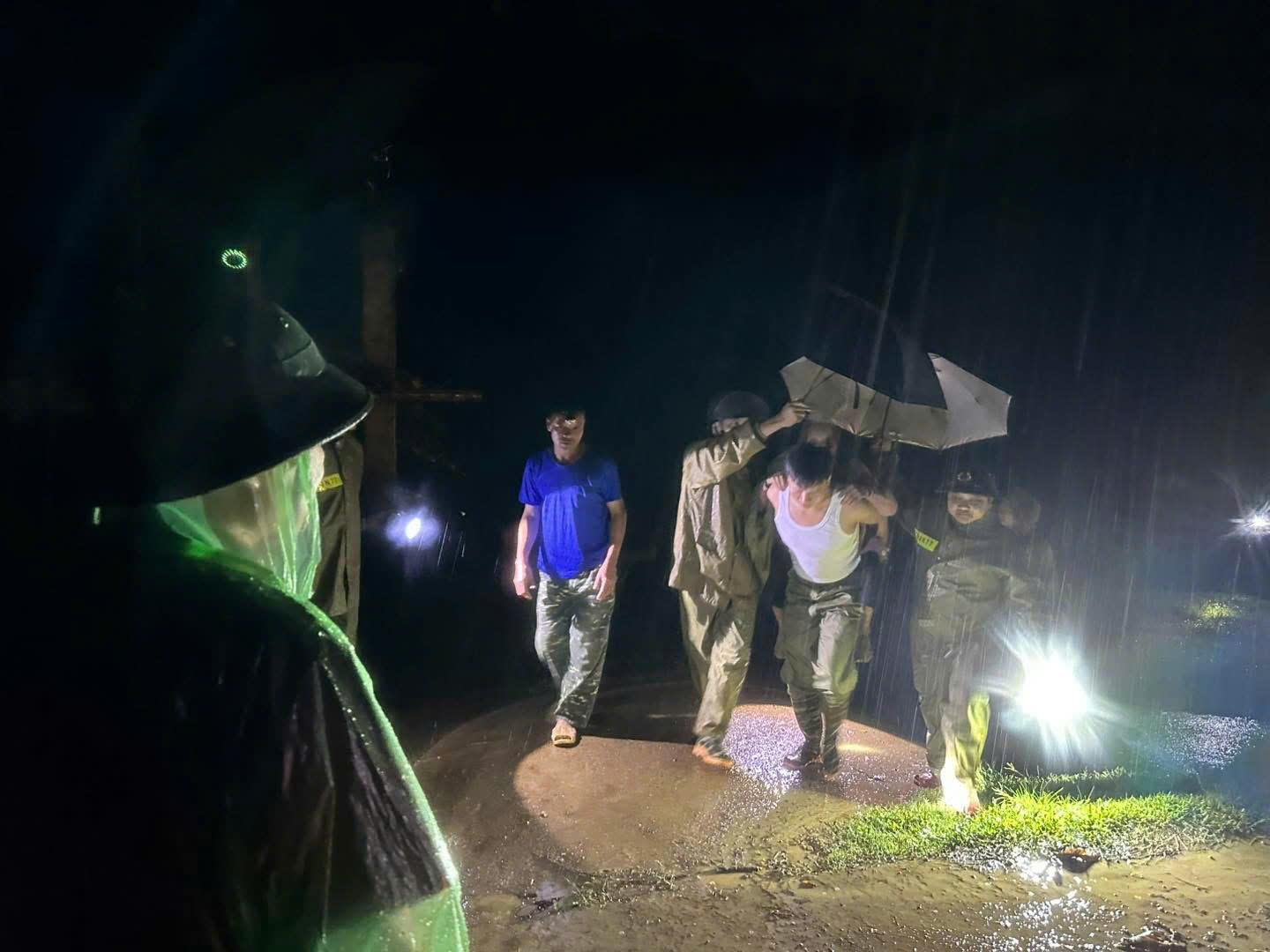 Công an xã Mường Thàng hỗ trợ di dời trong đêm các hộ dân đến khu vực an toàn do ảnh hưởng của cơn bão số 11
