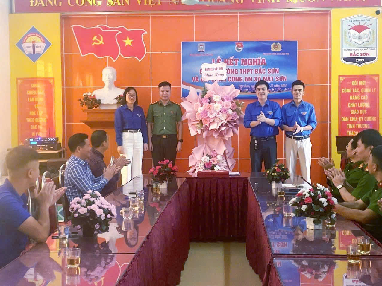 Đại diện Ban Giám hiệu Trường THPT Bắc Sơn bày tỏ niềm vui mừng, cảm ơn sự quan tâm, đồng hành của Chi đoàn Công an xã Nật Sơn trong công tác giáo dục học sinh; đồng thời mong rằng mối quan hệ kết nghĩa sẽ tiếp tục phát triển bền chặt, đem lại nhiều giá trị thiết thực, giúp các em học sinh có thêm sân chơi lành mạnh và cơ hội học hỏi, rèn luyện kỹ năng sống.