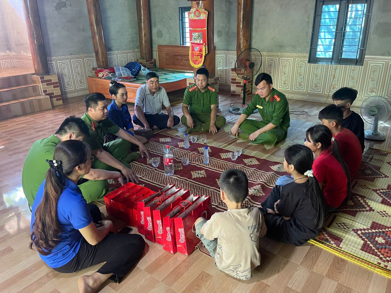 Công an xã và Đoàn Thanh niên xã Ngọc Sơn tặng quà cho học sinh có hoàn cảnh khó khăn vươn lên trong học tập