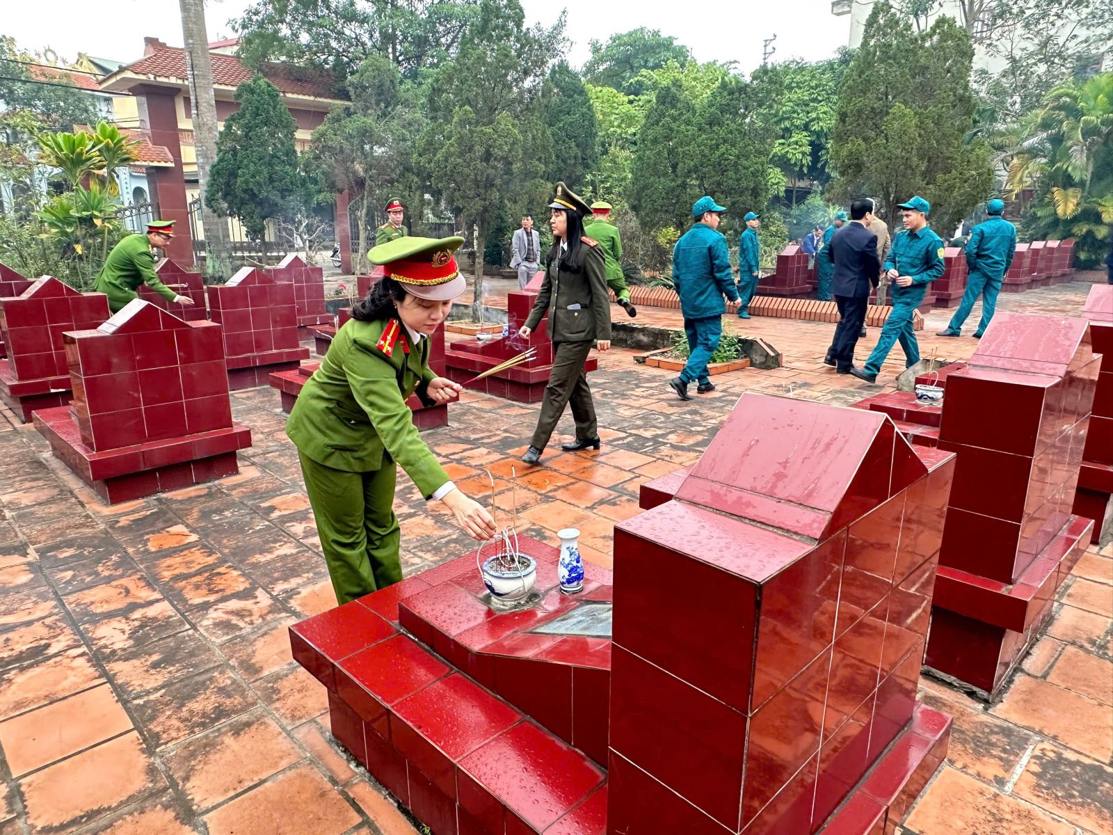 Công an xã Nguyệt Đức phối hợp tổ chức chỉnh trang, thăm viếng Nghĩa trang liệt sĩ Văn Tiến (14/02/2026)