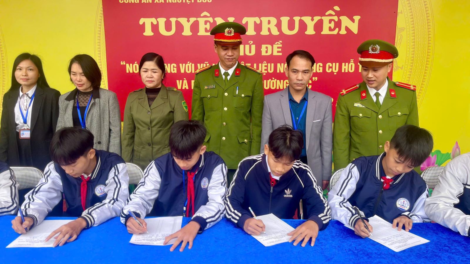 Thực hiện Kế hoạch số 5548/KH-CAT-PC06 ngày 28/11/2025 của Phòng Cảnh sát quản lý hành chính về trật tự xã hội Công an tỉnh Phú Thọ và Kế hoạch số 43/KH-CAX-CSKV ngày 03/12/2025 của Công an xã Nguyệt Đức về tăng cường phòng ngừa, đấu tranh với tội phạm, vi phạm pháp luật liên quan đến vũ khí, vật liệu nổ, công cụ hỗ trợ và pháo dịp Tết Dương lịch, Tết Nguyên đán Bính Ngọ 2026, Công an xã Nguyệt Đức đã chủ động triển khai đồng bộ nhiều giải pháp tuyên truyền, phòng ngừa thiết thực, hiệu quả, trong đó chú trọng công tác giáo dục pháp luật cho lứa tuổi học sinh.