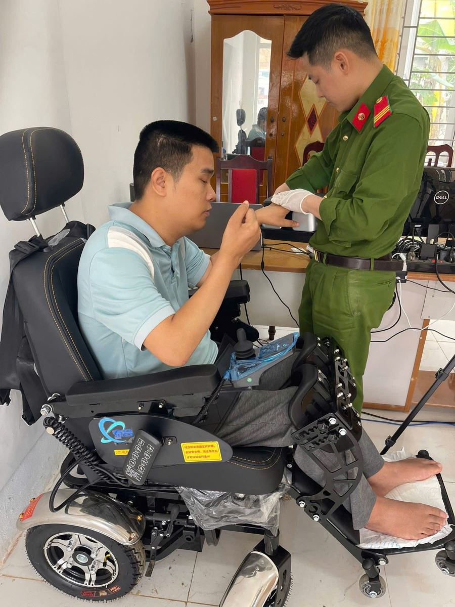 Công an xã Nhân Nghĩa hỗ trợ công dân khuyết tật làm thủ tục cấp căn cước