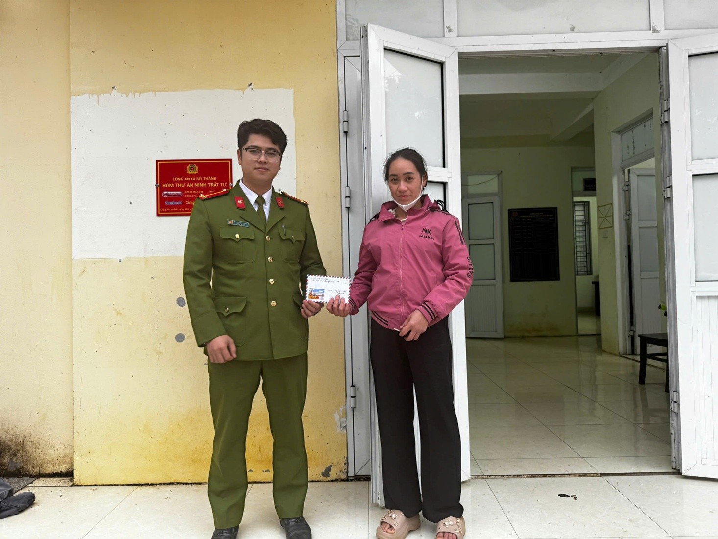 Công an xã Nhân Nghĩa trao trả tài sản cho người dân đánh rơi