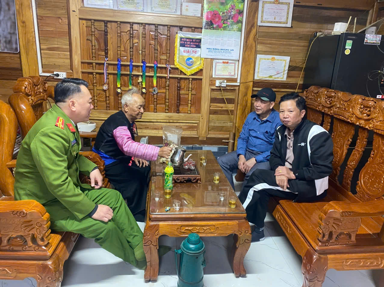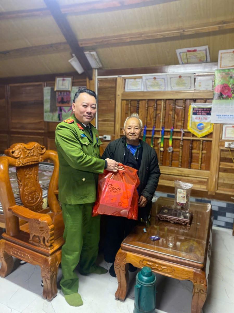 Thay mặt chỉ huy, cán bộ, chiến sĩ Công an xã, đồng chí Thượng tá Hà Tiến Dũng, Trưởng Công an xã đã trực tiếp đến thăm các gia đình già làng, người có uy tín trong đồng bào dân tộc Mông. Tại các nơi đến thăm, đồng chí ân cần hỏi thăm sức khỏe, đời sống, gửi lời chúc mừng năm mới an khang, hạnh phúc tới các già làng, người có uy tín và gia đình.