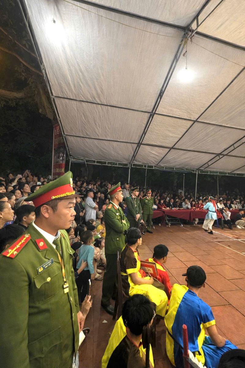 Trong suốt thời gian diễn ra các hoạt động, Công an xã tăng cường tuần tra, kiểm soát tại khu vực Miếu Trò và các tuyến đường ra vào khu vực tổ chức lễ hội. Công tác phân luồng, điều tiết giao thông được thực hiện chủ động, hạn chế ùn tắc, bảo đảm việc đi lại của người dân và du khách thuận lợi, an toàn. Các điểm trông giữ phương tiện được hướng dẫn sắp xếp gọn gàng, tránh lấn chiếm lòng đường, vỉa hè.