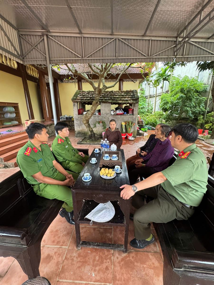 Lực lượng Công an xã phối hợp với các cơ sở tôn giáo trên địa bàn tuyên truyền, hướng dẫn tăng ni, phật tử