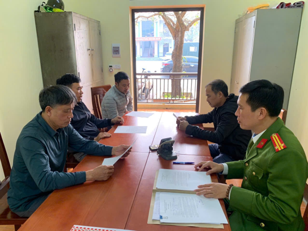 Công an xã Phùng Nguyên vận động các hộ kinh doanh ký cam kết chấp hành trật tự an toàn giao thông