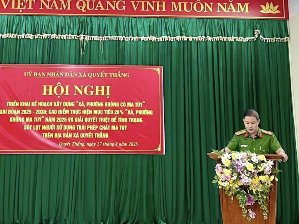 Thực hiện kế hoạch chỉ đạo của tỉnh về xây dựng “xã, phường không có ma túy” trên địa bàn, ngày 27/8/2025, Công an xã Quyết Thắng đã tham mưu UBND xã tổ chức Hội nghị triển khai xây dựng kế hoạch “xã, phường không có ma túy” giai đoạn 2025 – 2030; cao điểm thực hiện mục tiêu 20% “xã, phường không có ma túy” trong năm 2025.