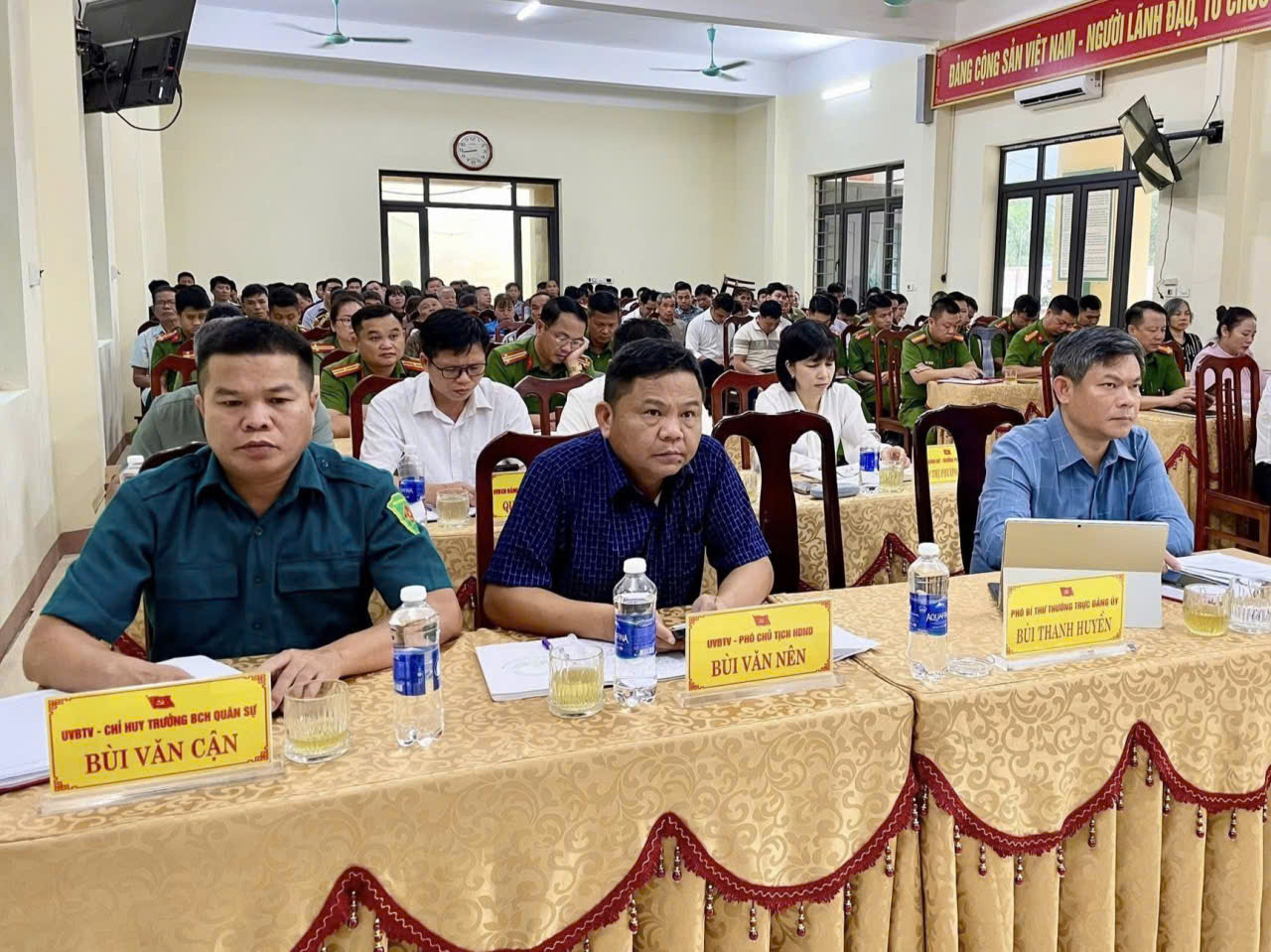 Tham dự Hội nghị có các đồng chí lãnh đạo Đảng ủy, HĐND, UBND, Ủy ban MTTQ Việt Nam xã; trưởng các ban, ngành, đoàn thể, đơn vị, trường học; bí thư chi bộ, trưởng xóm, trưởng Ban công tác mặt trận khu dân cư và tổ trưởng tổ ANTT các xóm.