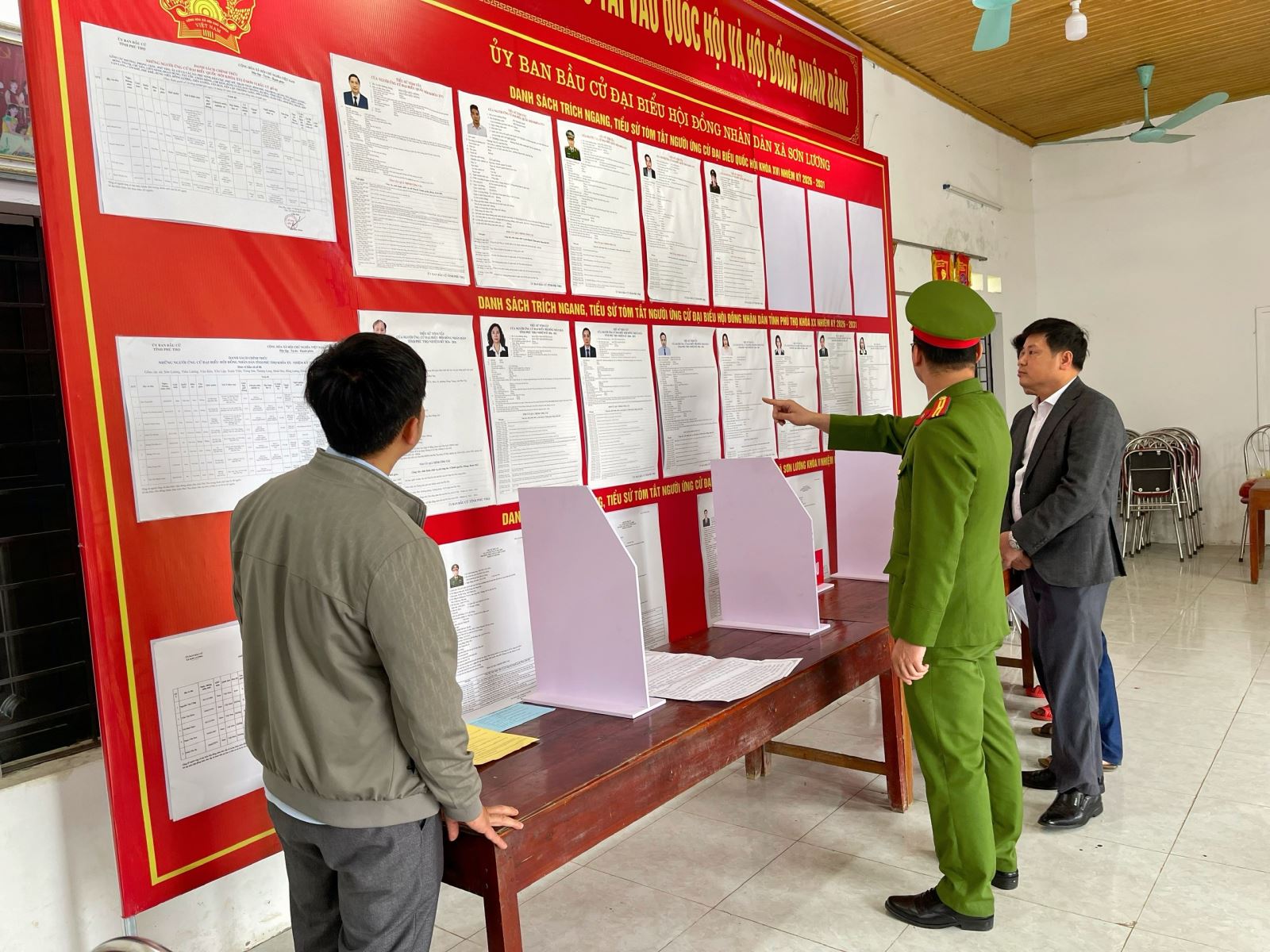 Công an xã Sơn Lương kiểm tra công tác bảo đảm an ninh, trật tự tại các điểm bầu cử Qua kiểm tra, lực lượng Công an xã đã rà soát các điều kiện bảo đảm an ninh, an toàn tại từng điểm bầu cử, kịp thời trao đổi, hướng dẫn các tổ bầu cử bổ sung một số nội dung cần thiết nhằm bảo đảm công tác tổ chức bầu cử được thực hiện đúng quy định, an toàn và thuận lợi cho cử tri tham gia bỏ phiếu.